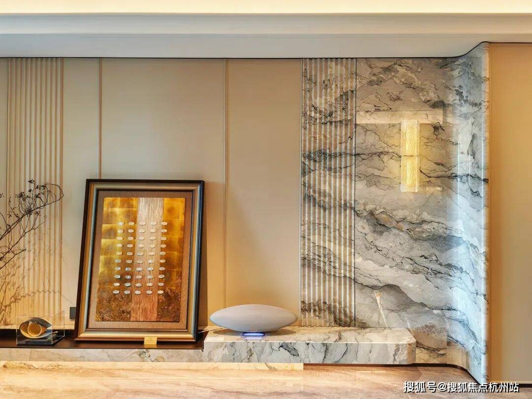 客餐厅方面,电视布景墙采用卡慕白石材+皮革,均为交付尺度;地面采用简一(或划一品牌)的900*1800仿石砖,密拼施工,几乎看不到有任何裂缝——相信有拆修经验的小伙伴必然晓得,这种大砖的价钱和如许的密缝工艺成本有多高!